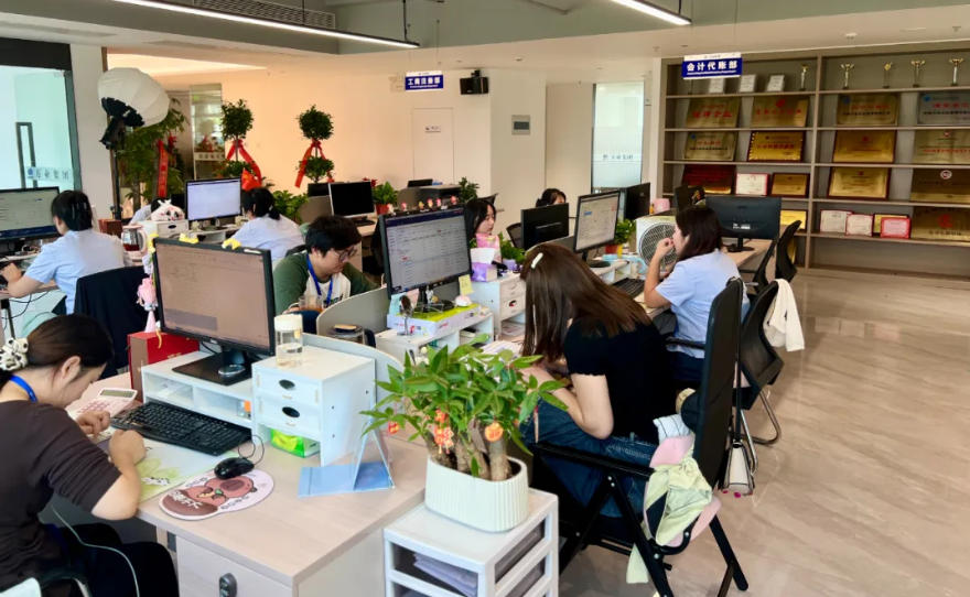 在全場熱切注視下,黃甲梅總經理與王所長、傅總、孫經理、黃經理、許主管手持金剪,共同為新辦公區剪來了象征希望與未來的彩帶。這一刻,掌聲、歡呼聲匯聚成對未來的無限期許。